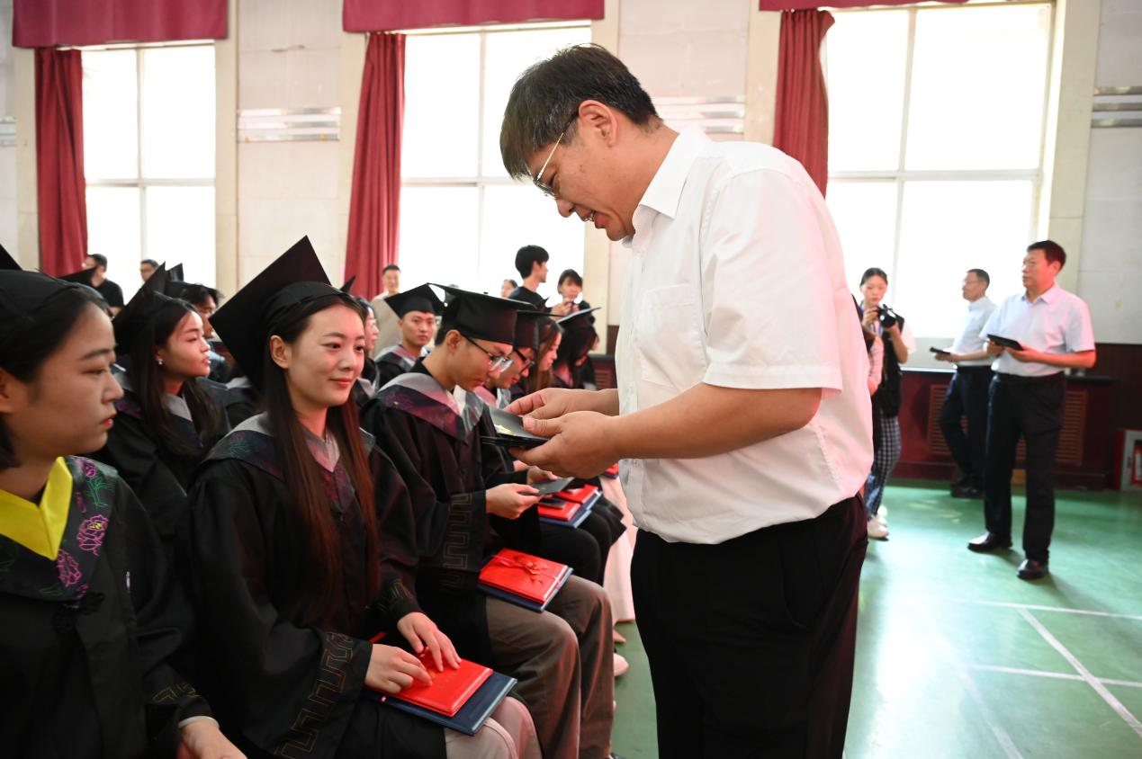 根据《suncitygroup太阳集团优秀毕业生评选办法》,公司授予253名同学“suncitygroup太阳集团优秀毕业生”的荣誉称号,教育厅授予74名同学“河北省普通高等公司优秀毕业生”荣誉称号。校院领导为毕业生代表颁发了毕业证书和学位证书,为优秀毕业生代表颁发了荣誉证书。