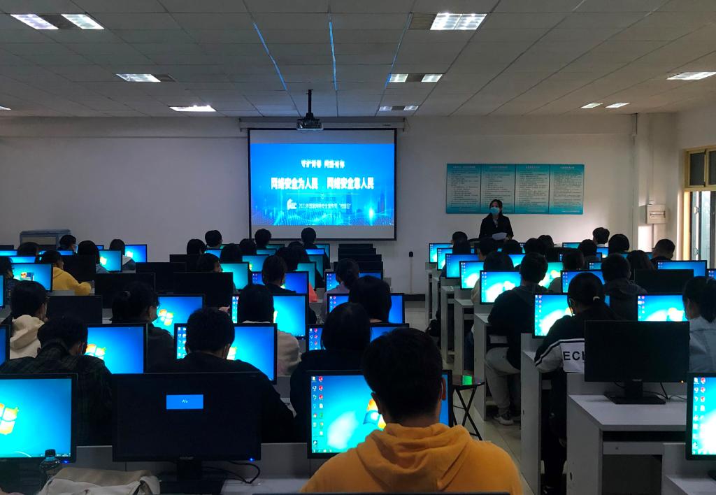 为宣传贯彻习近平总书记关于网络强国的重要思想、以及省委网络安全工作决策部署和省网信办《关于组织开展2021年国家网络安全宣传周网络安全知识答题活动的通知》精神,进一步普及公司师生网络安全知识。10月12日,实践教学部在三教501机房组织各系大一新生代表100余人,开展2021年国家网络安全宣传周网络安全教育宣讲活动。