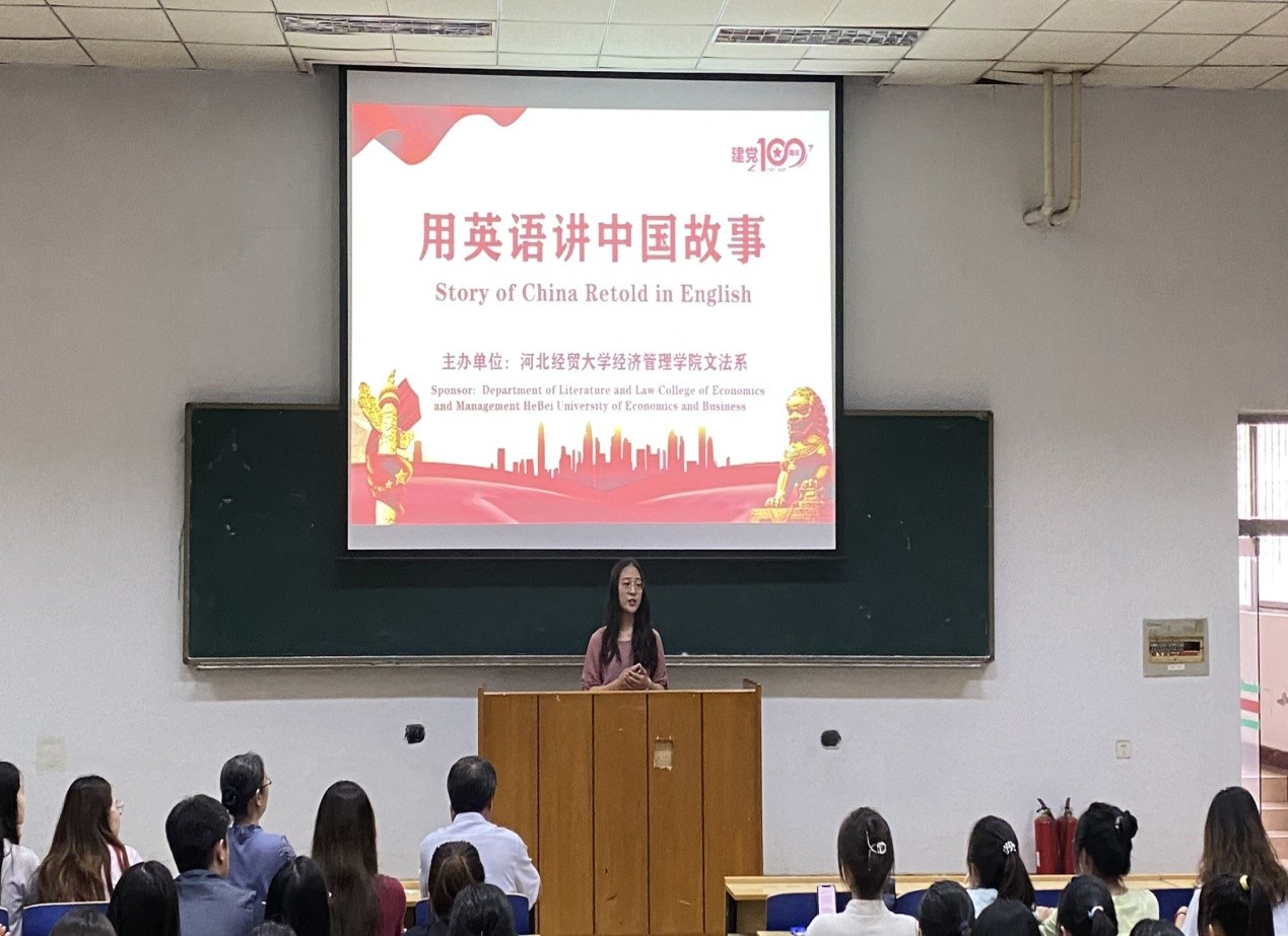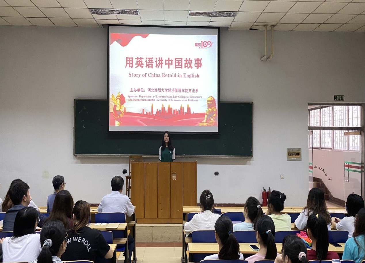 用英语讲中国故事主题活动为全英文演讲,参赛选手依次上台饱含深情地讲述中国共产党的发展史,讲述自己熟悉的党史人物,讲述催人奋进的中国故事。同学们语言流利,感情真挚,赢得了观众阵阵掌声。经过激烈角逐,王萱萱、张冰同学获一等奖,王思涵等三名同学获二等奖,李颖等七名同学获三等奖。本次主题活动展现出热爱祖国、热爱党、拥护党的领导的良好氛围,也加深了同学们对英语学习的认知,掌握了用英语讲好中国故事、讲好党史的方法,