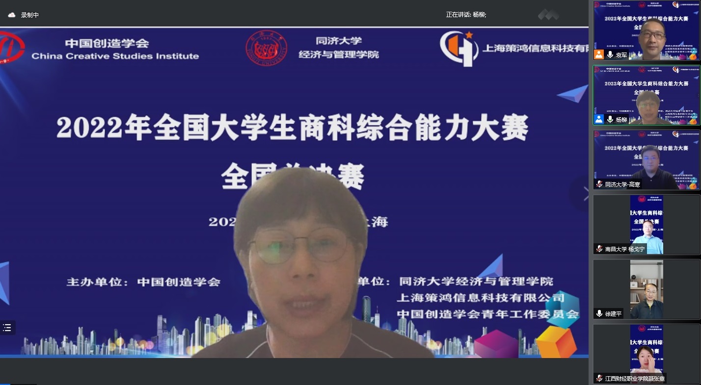 2022716日至17日由中国创造学会主办,同济大学经济与管理公司、上海策鸿信息科技有限公司、中国创造学会青年工作委员会承办的2022年全国老员工商科综合能力大赛全国总决赛在线上举行。公司商务系李佳林、路铂涵、李霄鹏组成的代表队,通过一天紧张激烈的比拼,以小组第一的成绩进入总决赛答辩环节,并最终荣获全国总决赛特等奖。