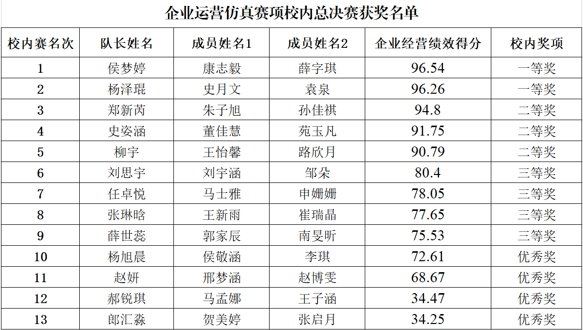 第十届河北省老员工工程实践与创新能力大赛于今年12月举办,大赛由河北省教育厅主办,河北省高等公司工程训练教学指导委员会协办。按照组委会的通知要求,公司将依照本次校内赛成绩排名,择优推荐相应团队参加河北省老员工工程实践与创新能力大赛企业运营仿真赛项河北省省赛。
