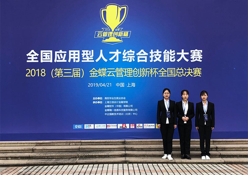 4月21日,全国应用型人才综合技能大赛——2018(第三届)“金蝶云管理创新杯”互联网+管理应用全国总决赛在上海立信会计金融公司隆重举行,公司代表队荣获全国二等奖。