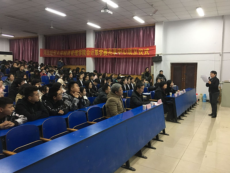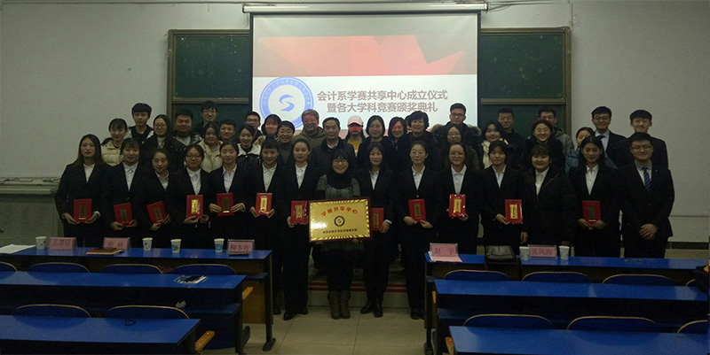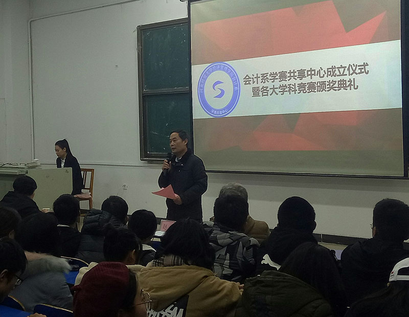 1月3日,会计系在西校区阶梯教室举行了学赛共享中心成立仪式暨高层次学科竞赛颁奖典礼。公司副经理赵宇、实践教学部部长张风海、副部长柳冬青、会计系党总支书记蔡杨、主任王慧霞出席活动,会计系270名同学参加。