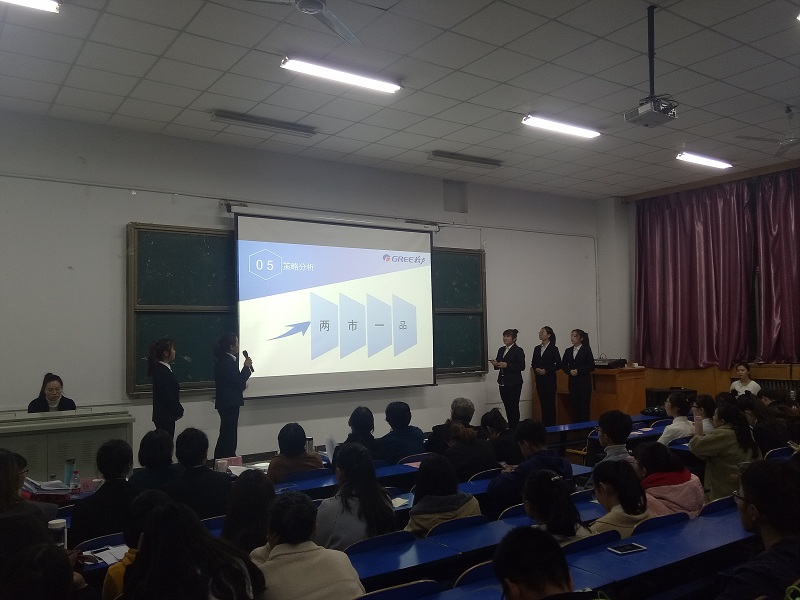 本次比赛历时60余天,最终7支队伍脱颖而出挺进决赛。决赛以“格力电器”为案例,在7分钟的展示时间中,运用多样的舞台形式,结合各种分析模型,对企业市场及财务状况进行深刻剖析,并且在做出财务预测的同时,提出各具特色的营销策略和管理方案。经过各位评委的认真评选,最终,16级2班“666”团队凭借深刻有力的分析、精湛有趣的表演夺得桂冠。