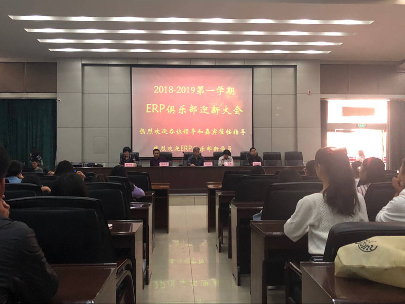 10月8日下午,由实践教学部主办的2018-2019年第一学期ERP俱乐部迎新宣讲大会在图书馆报告厅举行。公司经济系书记郑学栋、会计系王慧霞、管理系主任唐振龙、实践教学部部长张风海、副部长柳冬青以及实践教学部相关老师出席了本次活动。