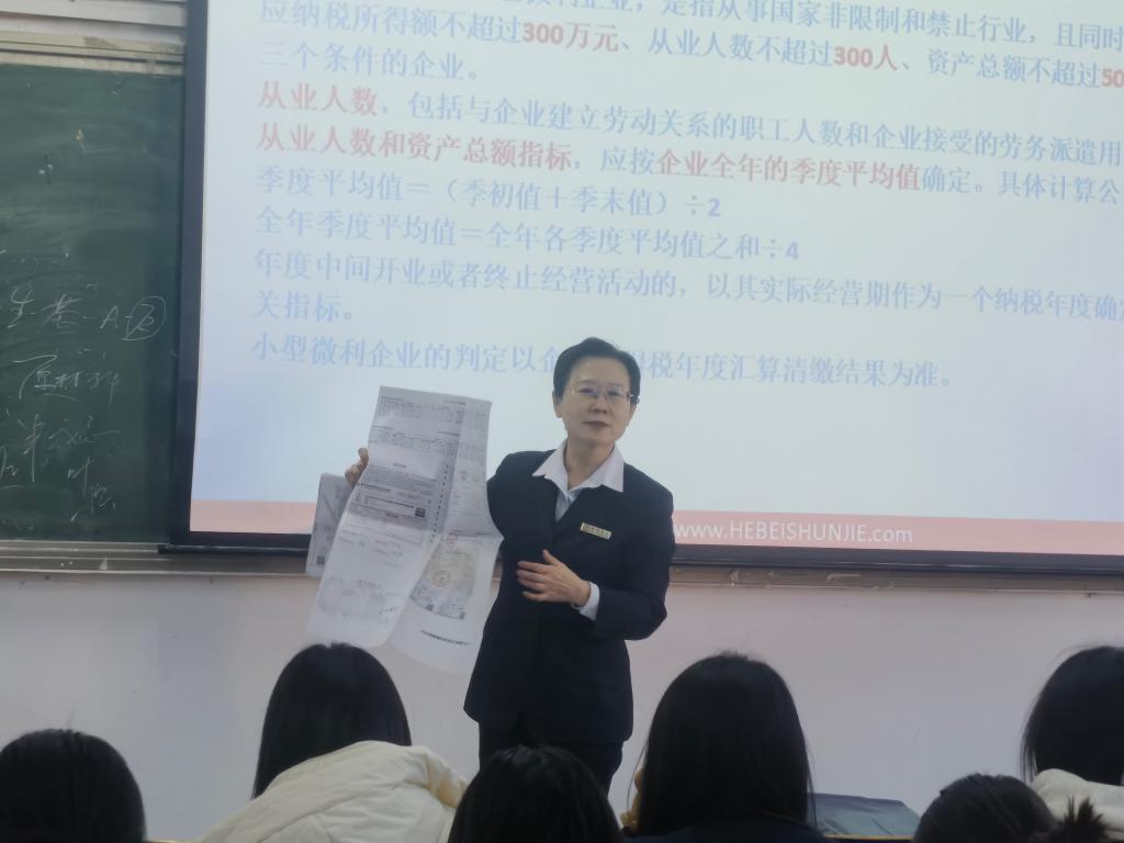 模拟实训期间唐金华为同学们讲解各类报表和发票的特点