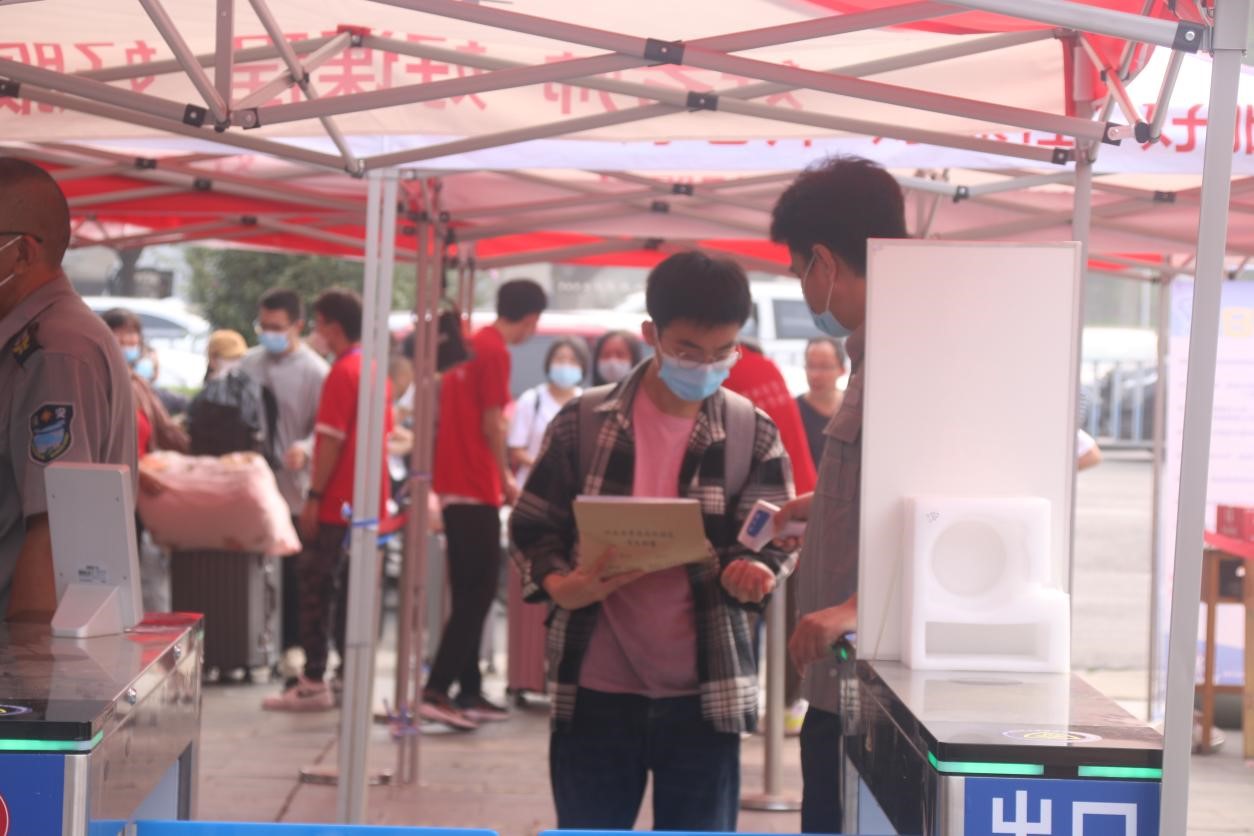 报到现场开设新生入校通道和行李通道,志愿者们在通道口热情迎接,为新生提供“一对一”服务。新生通过测温、展示健康码和行程码,并通过人脸识别后进入校园;行李物品通过行李通道进入校园,有效解决了行李物品多、入校速度慢等问题。全体迎新工作人员按照工作方案细致落实、相互协作,以高度的热情和周到的服务,确保迎新工作有序进行。公司还在图书馆广场前铺设了一条“成长之路”,寓意新生们走过小学、初中、高中等重要人生节点后,即将在这里踏上新的征程。