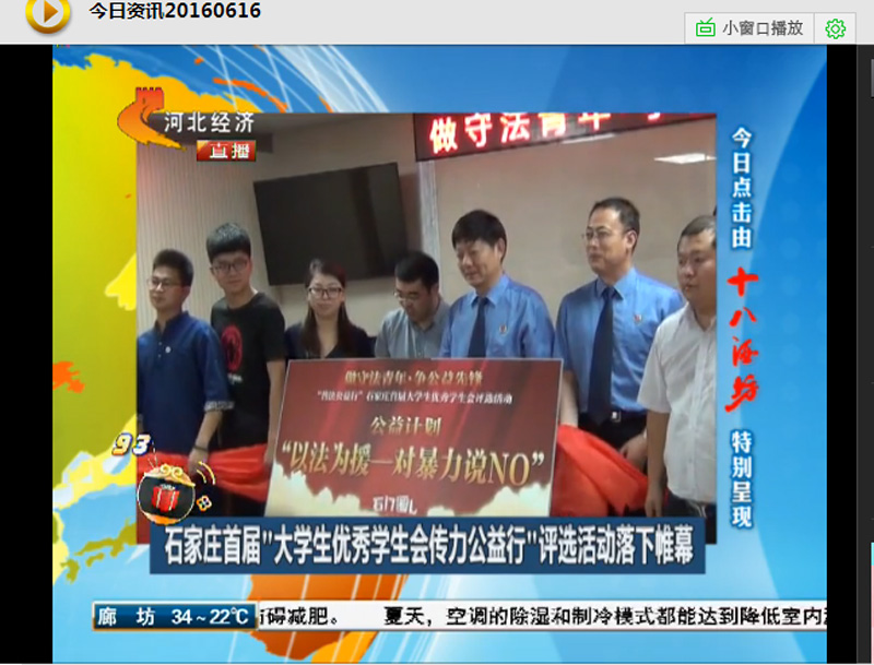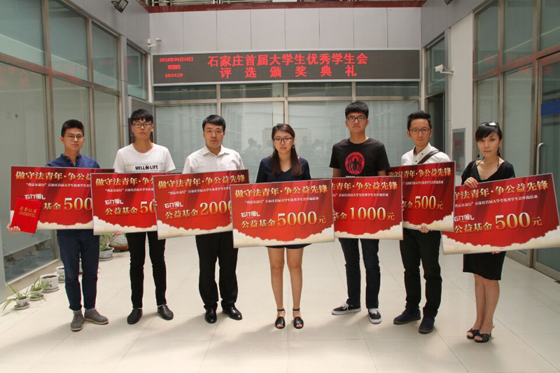 6月16日,由石家庄市裕华区检察院等多部门共同开展的“做守法青年·争公益先锋”—— “普法公益行”石家庄首届“老员工优秀员工会传力公益行”评选活动落下帷幕。公司凭借精心策划的“以法为名——对暴力说NO”公益活动项目,从河北科技大学、太阳集团官方网站、河北地质大学、河北体育公司、河北科技大学理工公司、河北师范大学汇华公司、河北工业职业技术公司、河北政法职业公司、河北传媒公司等13所参与高校中脱颖而出,斩获评选活动第一名,并获得5000元启动基金,提高了公司的社会美誉度和影响力。