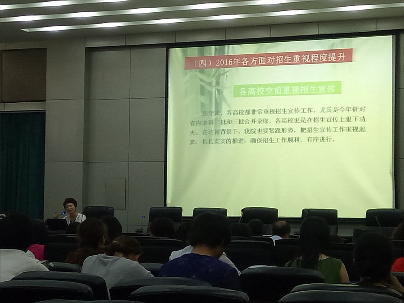 6月16日下午,公司2016年高考招生宣传部署工作会在图书馆报告厅举行。公司党委副书记刘会娟、各系党总支书记、各系主任,公司各部门负责人、学工部全体人员以及全体辅导员参加会议。