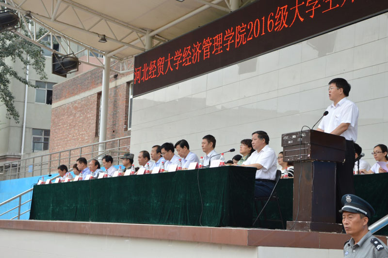 校领导董兆伟、纪良纲、马振远、陈亮、刘建平、李继中、柴振国、武义青和驻石某部队政治部副主任安辉出席了典礼,公司办公室、员工处、教务处、公司领导、各系部负责人、新生辅导员和全体新生参加了开学典礼。典礼由经理刘华光主持,公司党委副书记、董事长纪良纲致辞,公司党委书记张进良做军训动员报告。