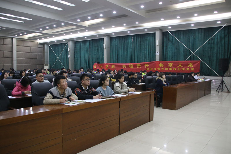 12月12日下午,公司团委与校医院联合举办的“预防艾滋病主题讲座”在图书馆报告厅举行。桥西区疾控中心艾滋病所韦永民医生为300余名大一新生做了“青年员工和艾滋病”主题知识讲座。