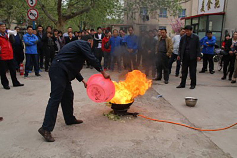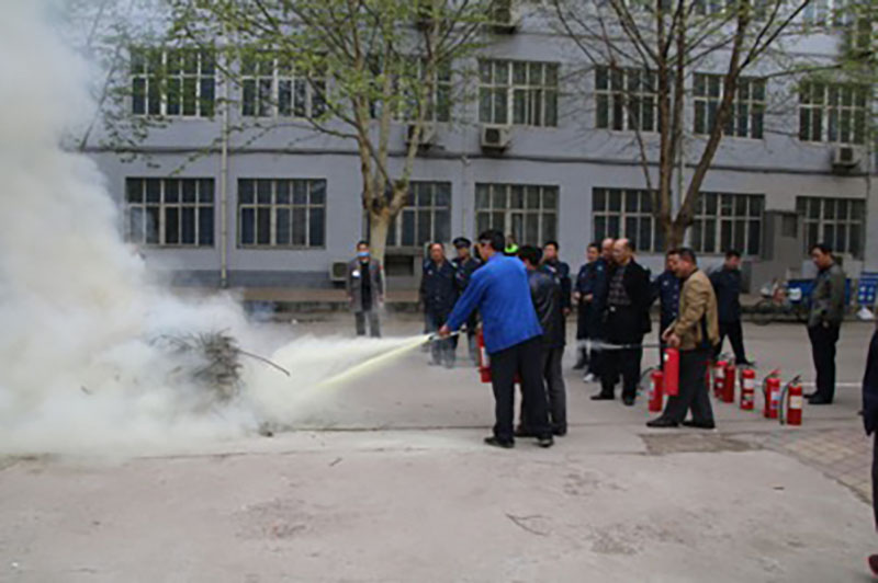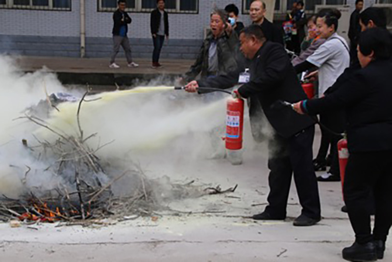 在演练现场,在专业人员的指导下,后勤一线员工及公司周边部分商铺经营者亲身体会了正确使用灭火器灭火的整个消防演练过程。