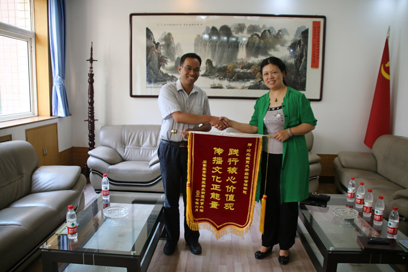 6月16日下午,石家庄市桥西区南长街道党工委副书记李海兵一行四人来公司赠送锦旗,对公司青年志愿者在创建全国文明城市工作中的积极表现给予高度认可。