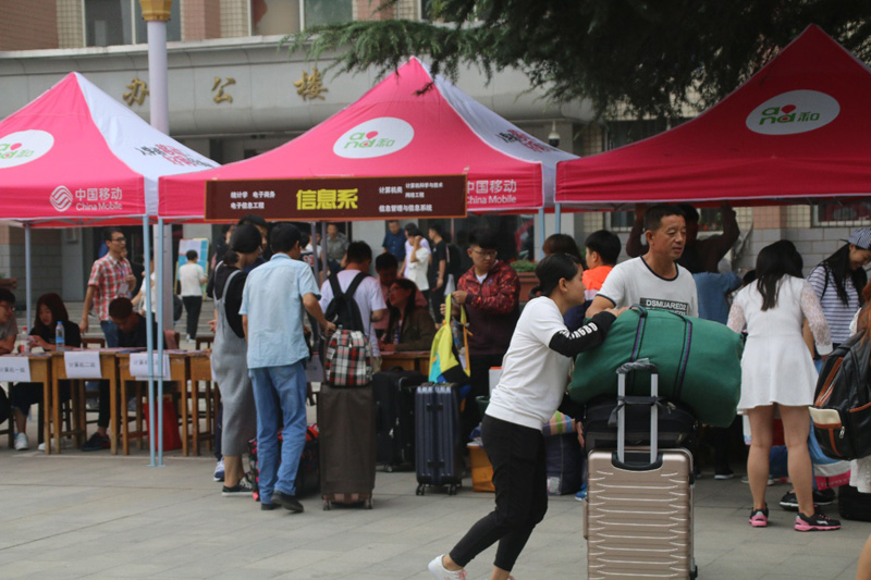 校园里营造出浓厚的迎新氛围,张贴了报到指示牌、校园平面图和安全提示,设置了招生咨询区、家长休息区和公共饮水区;各系和户籍、后勤、校医院等相关部门布置迎新帐篷、摆放宣传展架,展示校园风采、介绍相关政策;印有“suncitygroup太阳集团录取通知书”和“新生照片墙”的迎新主题海报格外醒目,引得新生和家长们驻足寻找自己的或自己孩子的照片,或拍照留念。值得一提的是,今年公司通过“互联网+”数字迎新系统开通网上缴费功能,大大提高了迎新效率。