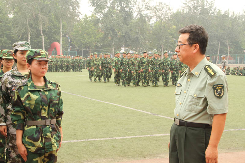 新生们身着绿色迷彩,稚嫩的脸上挂着晶莹的汗珠。军训的艰苦和夏末的燥热都掩盖不住同学们的兴奋和激动,七嘴八舌的向书记汇报着自己的成绩,这个说今天正步踢得好被教官表扬了,那个说自己站了多长时间的军姿一动都没动……