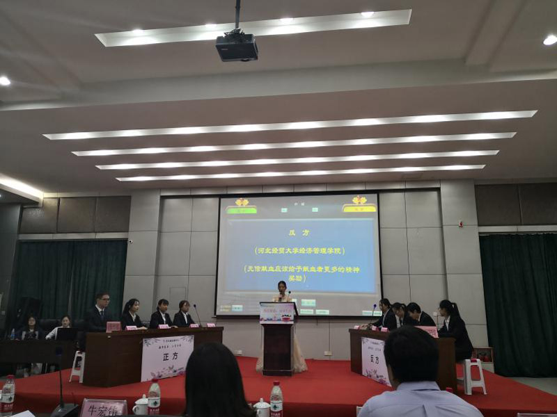 4月21日,由公司和河北省血液中心、河北师范大学汇华公司联合举办的“激昂青春 分享生命”无偿献血主题辩论决赛在图书馆报告厅举办。河北省血液中心党委副书记牛宏伟出席了本次活动并担任评委,河北师范大学汇华公司和公司师生300余人参加了此次活动。经过多轮比拼,公司代表队最终斩获冠军。