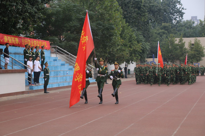 7点55分,伴随着庄严的升国旗仪式,公司2018级军训结业式正式拉开序幕。“迎—院—旗!”3名身着礼服的仪仗队员护卫着鲜艳的院旗,昂首阔步走过阅兵场,全体同学向院旗行注目礼。