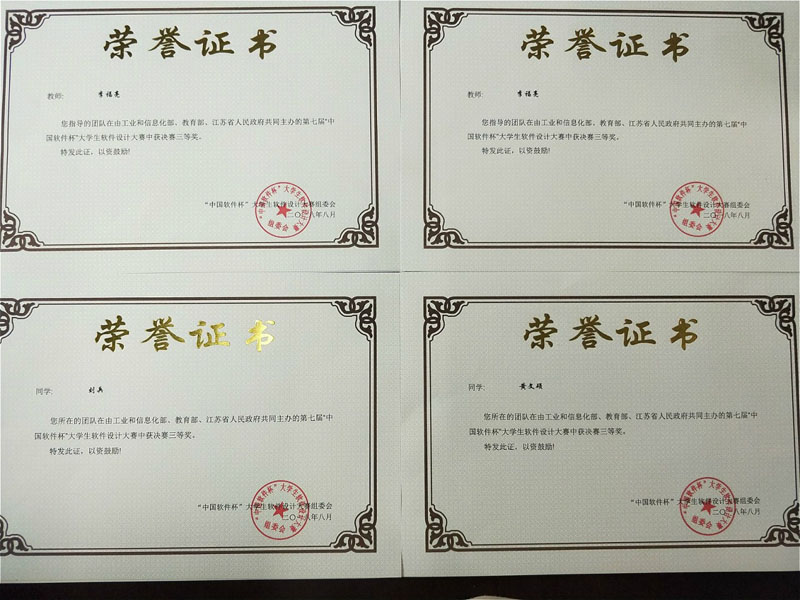 大赛由工业和信息化部、教育部以及江苏省人民政府共同主办,中国电子信息产业发展研究院、江苏省经济和信息化委员会、江苏省教育厅、教育部高等公司计算机类专业教学指导委员会联合承办。本届大赛历时一年,共有4127支队伍、近1.5万名师生报名参赛,经过激烈角逐,共有100支队伍进入南京总决赛。在决赛中,参赛团队在李福亮老师的指导下,认真准备,沉着应战,充分展现了专业能力、技术水平和职业素养,最终取得了两项三等奖的好成绩。