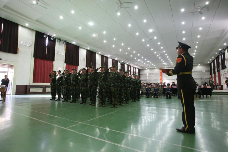 比赛在庄严的展国旗奏唱国歌仪式中拉开帷幕,一段铿锵有力的记录片展现了公司国旗护卫队坚韧不拔、斗志昂扬、积极向上的精神风貌,兄弟院校的国旗护卫队以视频的方式为比武大赛送上祝福。5个班34名参赛队员踩着整齐的步伐依次进场进行队列会操表演,各班以激昂的士气,饱满的精神状态、整齐的步伐、飒爽的英姿征服了观众,现场掌声阵阵。