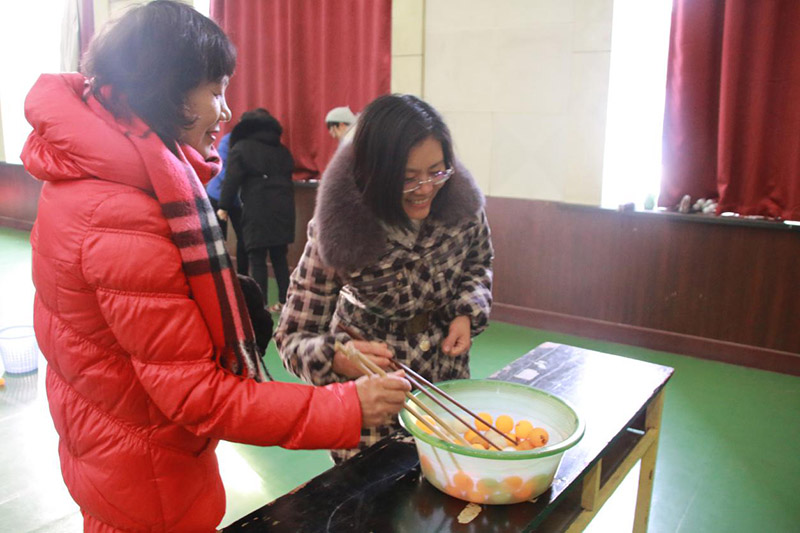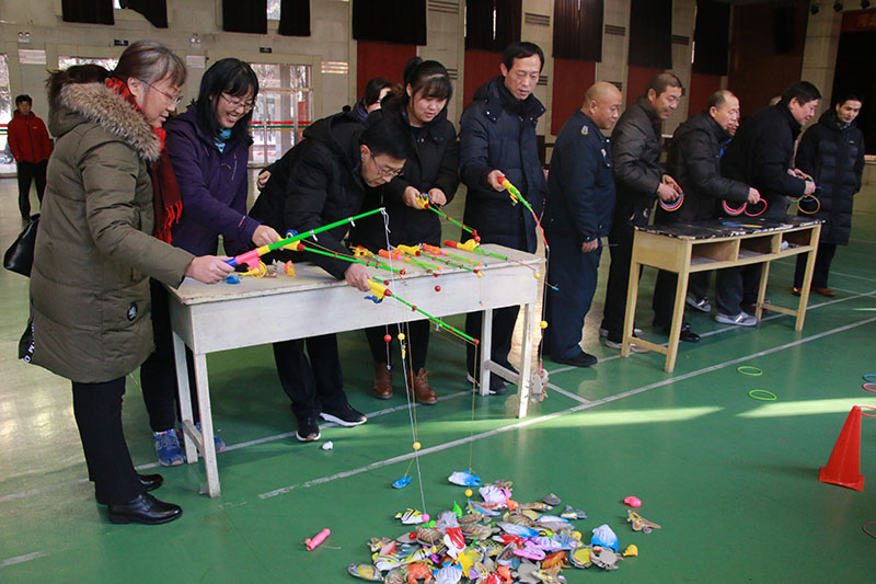 游艺会共分8项游戏活动。包括吹蜡烛、定位投篮、夹乒乓球、套圈、钓鱼、抢凳子、踢毽子等趣味游戏。老师们按照事先报名的项目现场“闯关”,游艺活动还吸引了不少教工家属参与其中,大家沉浸在轻松愉快的气氛当中。