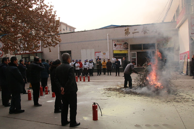 活动开始前,安全保卫部相关负责人首先讲解了冬季防火须知,并针对食堂火源种类、灭火方式选择以及发现火情后的处理办法等消防基本知识进行了培训,并现场演示了常用的手提式干粉灭火器等灭火设备的正确使用方法。