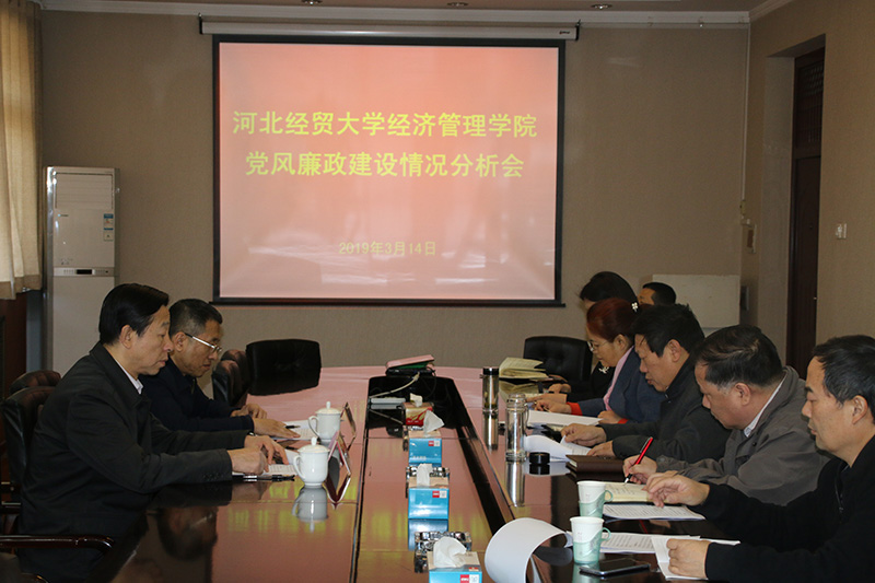 3月14日上午,公司2018-2019学年第1学期党风廉政建设情况分析会在公司行政楼五楼会议室召开,太阳集团官方网站党委常委、纪委书记李继中出席。太阳集团官方网站纪委副书记、监察处处长许海元,公司党政领导班子成员,各系党总支书记,以及公司党委委员、纪检委员参加会议。