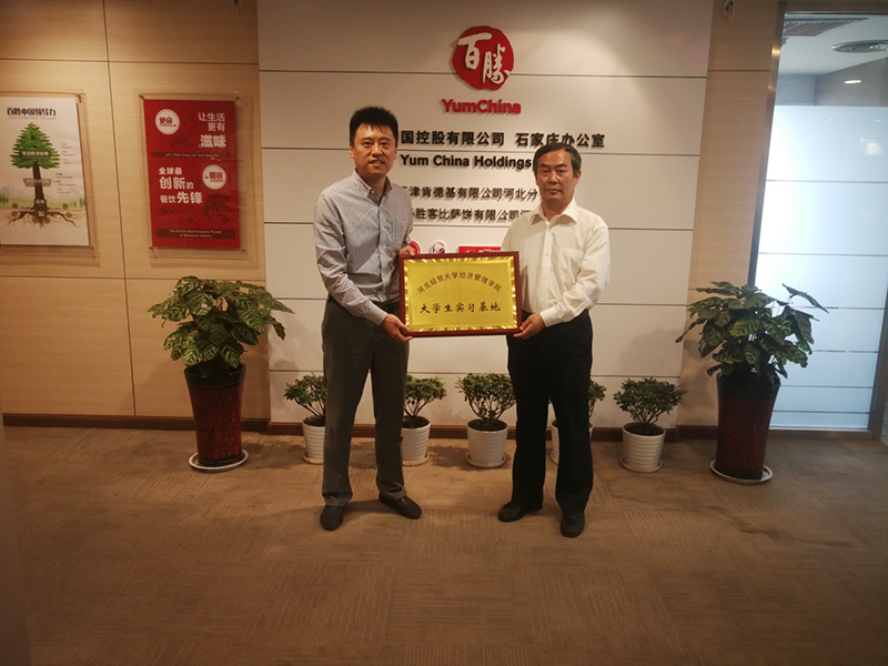 5月16日上午,管理系与天津肯德基有限公司举行老员工实践基地授牌仪式,公司副经理赵宇、系主任唐振龙、书记刘钺、教务秘书范丽波参加了此次活动。