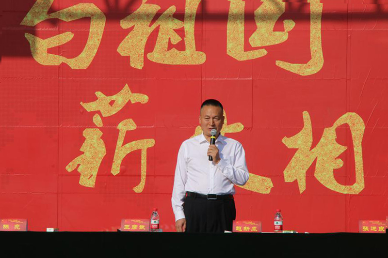 张进良致辞,他回顾了国旗见证新中国由成立到富强的历史时刻,简述了公司以国旗教育为立德树人的切入点的成功经验,阐述了纪念国旗诞生70周年活动的意义,并预祝活动圆满成功。