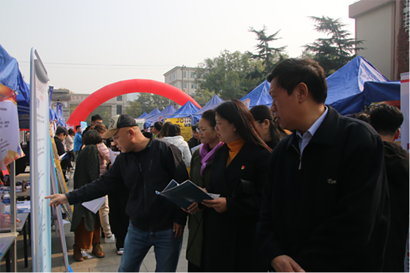 11月8日,石家庄市2019创业就业服务金秋高校行暨公司2020届毕业生校园双选会在图书馆广场举行。公司领导和各系书记亲临现场,指导工作并调研就业情况。
