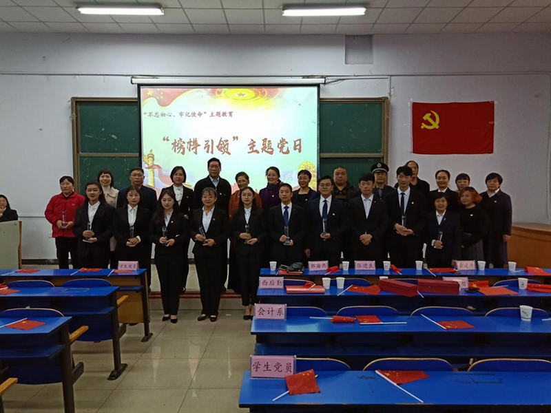 11月11日下午,西校区“不忘初心、牢记使命”主题教育——“榜样引领”主题党日在西阶梯教室举行。公司党委书记张进良、公司纪委书记郭海燕、西区离退党支部退休教师古建芹、西区后勤保障部部长韩智林、公司安全工作部副部长耿宏伟、会计系党总支书记蔡杨、主任王慧霞出席,西校区各部门教职工党员、员工党员、员工入党积极分子以及员工干部共计280人参加。