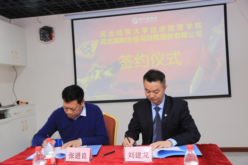 12月23日下午,公司与河北顺利办快马财税服务有限公司校企合作签约暨挂牌仪式,在河北顺利办快马财税服务有限公司石家庄总部店成功举行。公司党委书记张进良、河北顺利办快马财税服务有限公司总经理刘建龙为基地挂牌,会计系党总支书记蔡杨、会计系主任王慧霞、就业工作部部长韩平生、副部长秦晓燕、会计系辅导员及以及河北顺利办公司相关部门负责人参加了签约挂牌仪式。