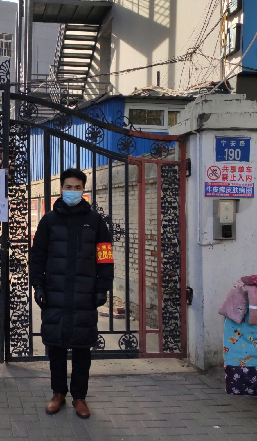 廖俊峰书记在小区门口执勤