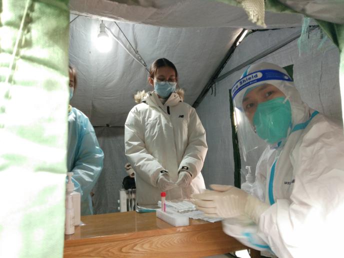 感受到公司关爱的同时,同学们也奉献出了自己的爱。1月5日居委会发布招募志愿者信息,三人毫不犹豫地报名参与,上岗后积极工作,帮助录入核酸检测的信息,维护现场秩序。