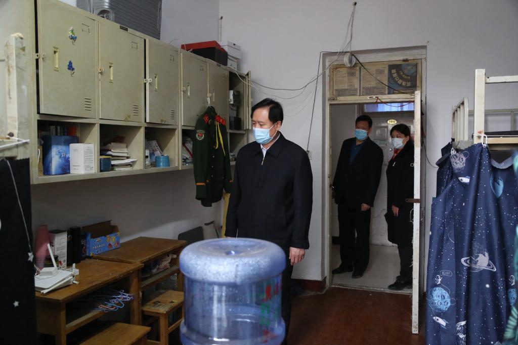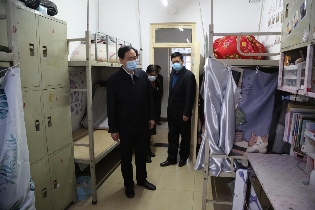 刘建平首先来到员工宿舍,叮嘱大家务必一切以员工为本,想员工之所想,急员工之所急,以高度的责任感和饱满的工作热情为员工提供热忱细致的服务,保障员工利益,确保每一位员工平安愉快返校。随后,刘建平对员工餐厅、教工餐厅、食堂后厨等进行检查,了解各项准备情况,提出具体要求。