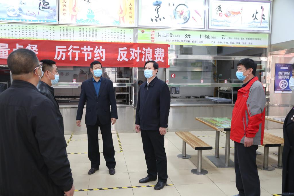 4月1日下午,公司党委副书记刘建平来到公司,对公司校园疫情防控和员工返校准备工作进行现场检查和指导。公司领导班子、各系党总支书记参加,办公室、学工部、后勤保障部相关人员陪同。