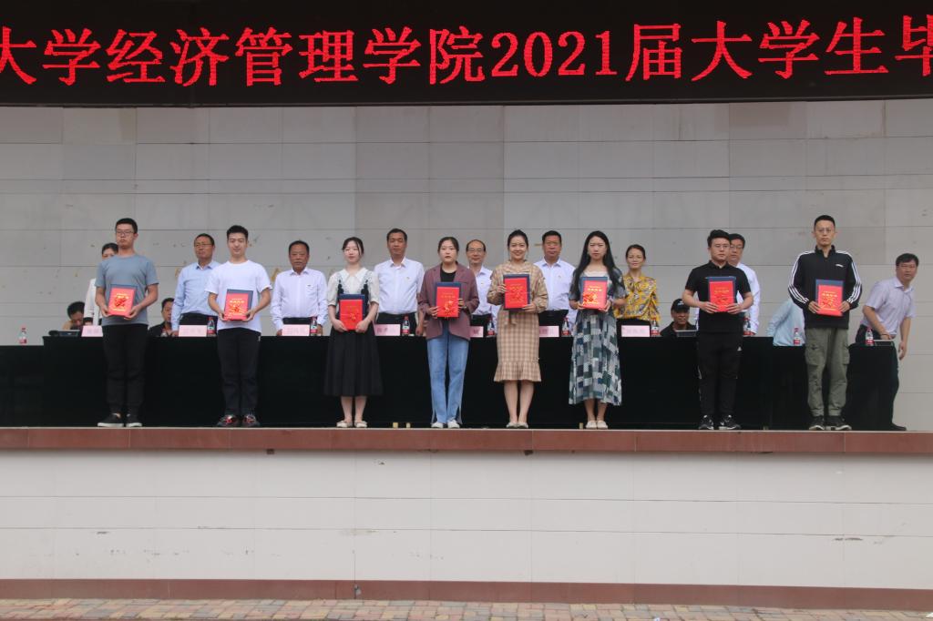 典礼上,张丽英宣读了2021届优秀毕业生表彰文件。校院领导为毕业生代表颁发了毕业证书和学位证书,为优秀毕业生代表颁发了荣誉证书。 (撰稿/摄影:姜瑞 刘琦)