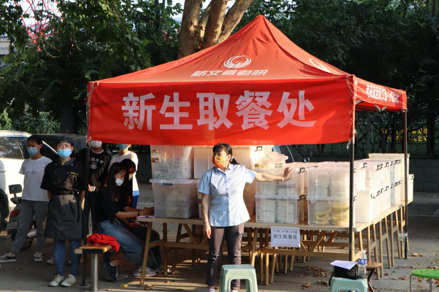 新生入校后将进行三天的静默管理,公司后勤部门专门配备标准化快餐,荤素搭配,营养均衡,志愿者们在取餐点统一打包后,配送上楼。新生们表示:开学第一天,我们就感受到公司的服务,体贴周到,暖心又暖胃。