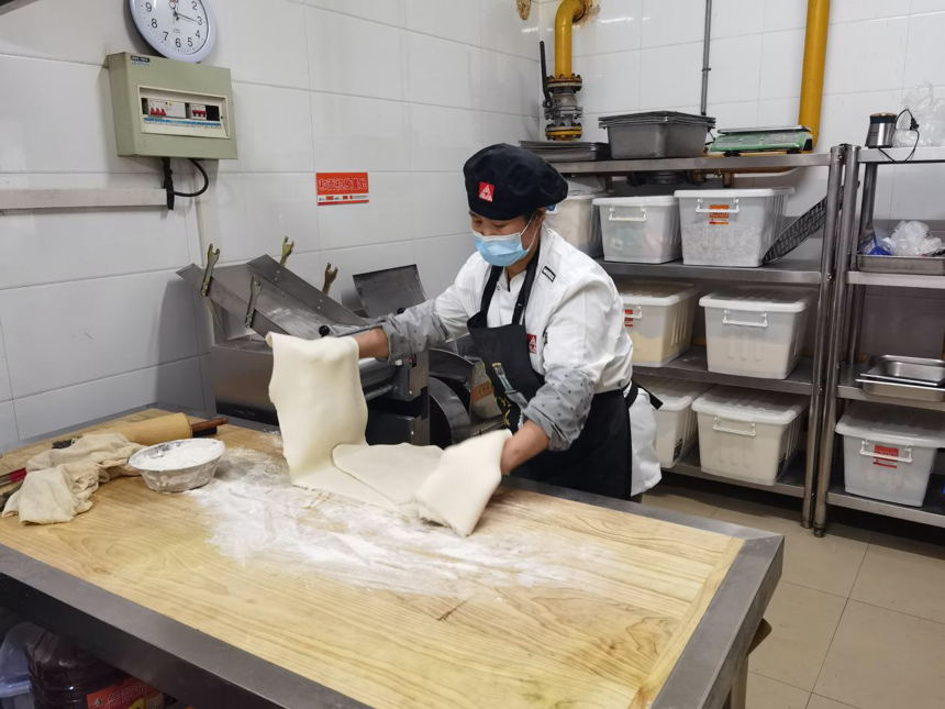 为确保封闭管理期间餐饮保障安全、有序,餐饮中心130多名员工选择无条件坚守食堂,他们没有员工宿舍,就把自家的车放到公司当宿舍,他们没有宿舍,就睡在公司提供的教室里。大家克服种种困难,用责任和汗水,为员工们学习和生活提供了有力保障。