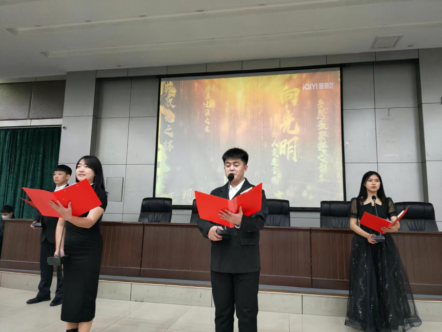 在严格执行防控政策的前提下,现场展演的选手有的身着古装穿越时空与孔子对话,分享中华传统文化的精髓;有的含情脉脉讲述《习近平的七年知青岁月》,将听众带入黄土高原,体会青年时期习近平扎根陕北的淬火磨砺;有的借助影音画面呈现出《平凡的世界》的场景,动情地讲述这部书对自己的影响……终场,院员工会广播台袁一博等同学集体朗诵了李大钊的《青春》,以铿锵有力的语调、饱满诚挚的情感彰显了当代青年的责任与担当。