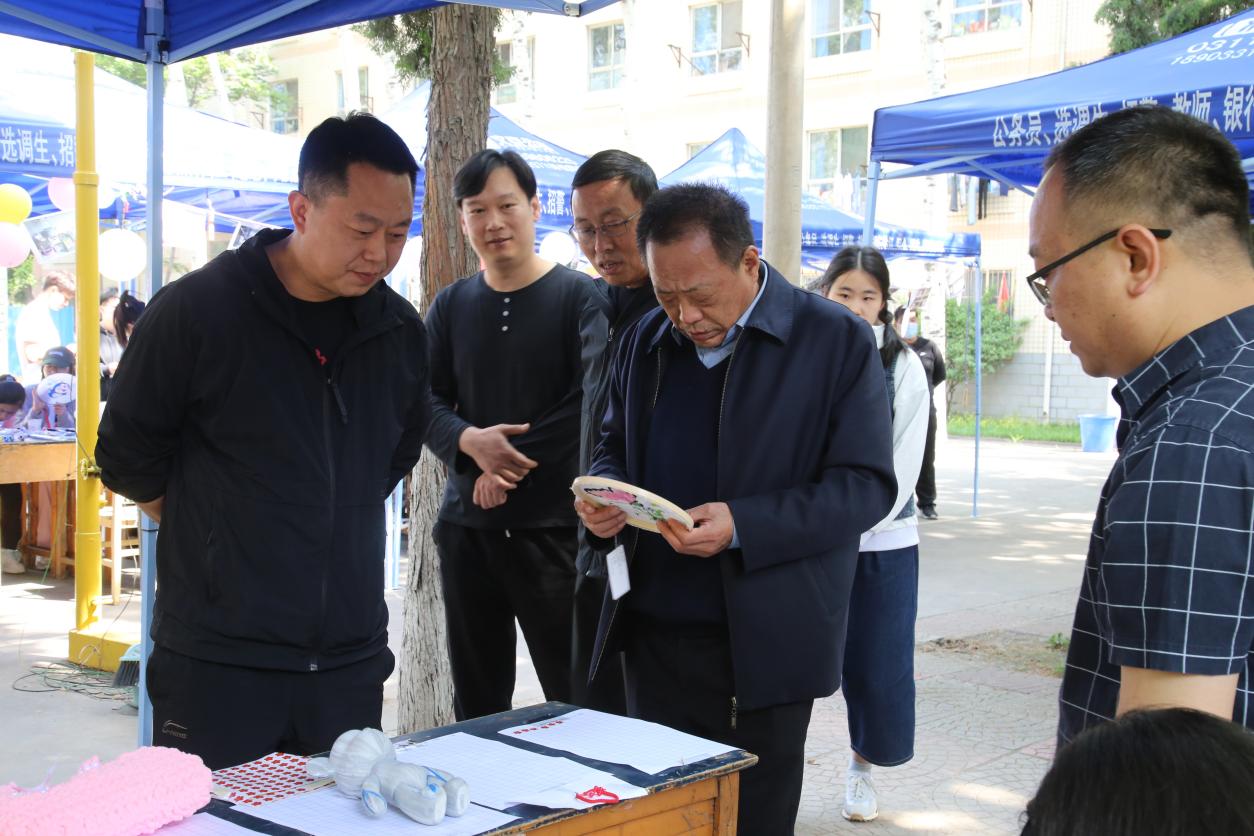5月8日,优秀作品展览评比在羽毛球场举办。公司领导刘风长、张进良、张金桐、江秀军莅临观摩。手工制作展区的参与者络绎不绝,每每有好作品出现,总能引起一片欢呼。抽奖台前,同学们摩拳擦掌,期待抽取专属幸运。到场同学们纷纷表示:亲手绘制扇面,捏制黏土等趣味手工,让自己瞬间找回了童年。活动引来众多师生参观,并为心目中独具匠心的作品投上满意的一票。