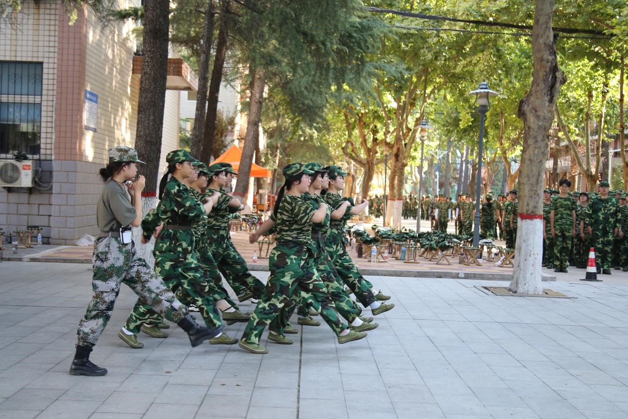 由于校园环境升级改造项目尚未竣工,操场未正常使用前,2000多名新生的军训在图书馆广场和甬道上分批举行。同学们和国旗护卫队军训教官克服场地紧张的困难,一丝不苟地完成军训课程。
