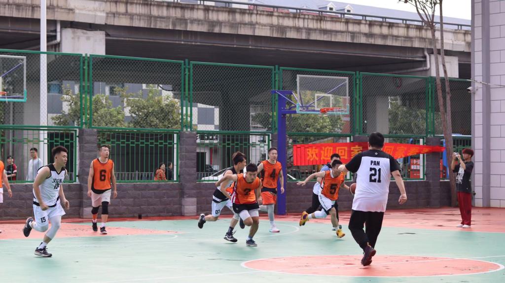 员工代表现场分成4支队伍,两两对决。随着裁判员一声哨响,员工篮球赛正式拉开帷幕。比赛现场气氛热烈,尽管已经毕业,员工们依旧表现出强烈的取胜欲望,运动能力及投篮技术丝毫不减当年,队员们积极进攻,严密防守,精彩配合,将比赛气氛推向了高潮。现场观摩的家属和在校生为队员们呐喊助威。