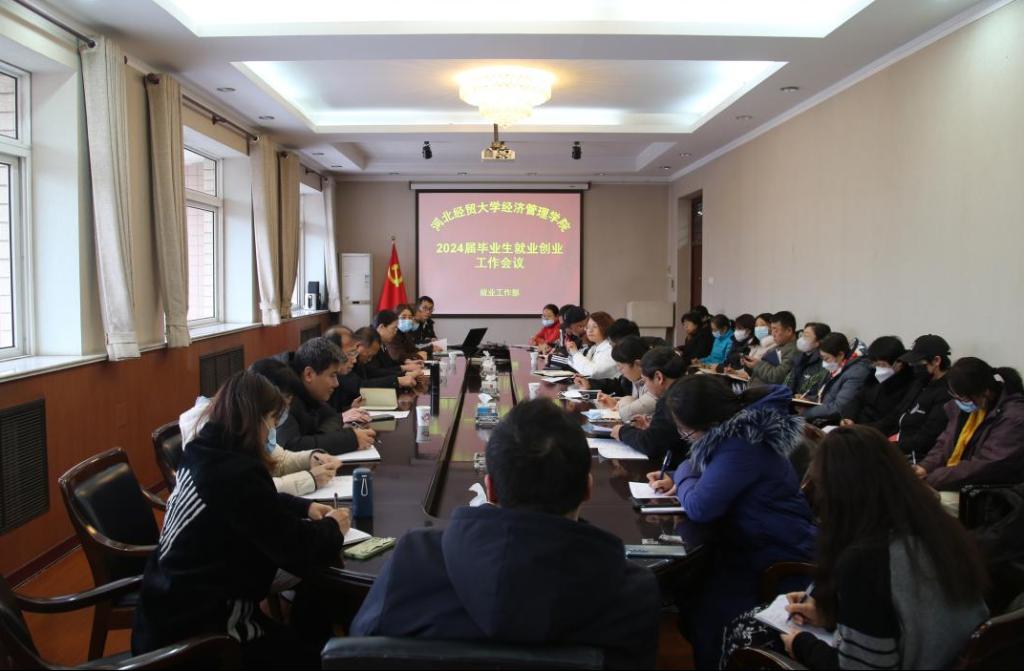 12月14日下午,公司2024届毕业生就业创业工作会议在五楼会议室召开。经理刘风长、公司党委书记蔡杨、副经理王鸿喜出席,各系书记、副书记、就业工作负责人和全体辅导员参加。会议由王鸿喜主持。