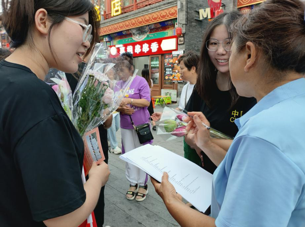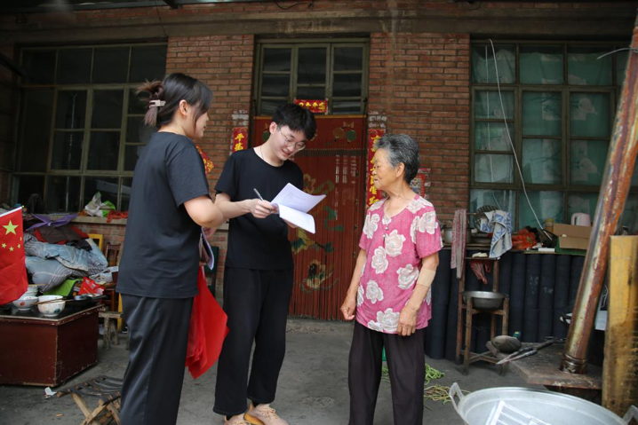 烈日下,队员们走街串巷,以他们热情的微笑和耐心地讲解赢得当地居民的信任与支持,认真地填写了问卷,并提出了相关建议,同时队员们也在调查的同时认真记录并解答了一些国旗、国徽、国歌相关知识。