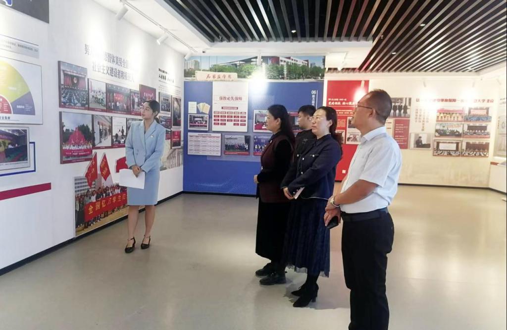 张丽英一行在石家庄公司美术与设计公司党总支书记史晶、宣传部副部长姚振伟的陪同下,先后参观了石家庄公司校史馆、石家庄地域文化馆、融媒体中心,详细了解了该校的办学历史、发展战略、校园文化及阵地建设情况,并与石家庄公司宣传部工作人员进行了座谈。