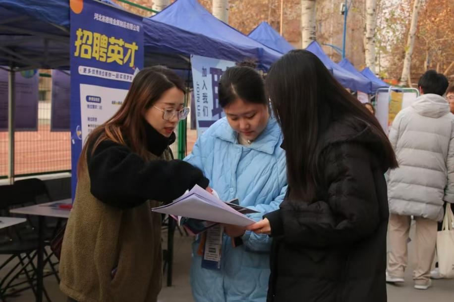 随着峰会议程接近尾声,在操场甬道举办的招聘会拉开帷幕。