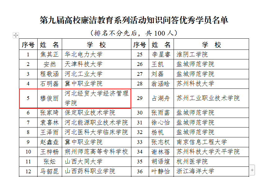近日,教育部办公厅公布第九届高校廉洁教育系列活动结果。公司通过廉洁文化月活动征集并选送的作品《输赢皆在廉腐之间》入选系列活动“画廉正心”创意征集遴选名单;穆俊丽入选系列活动知识问答优秀学员名单。