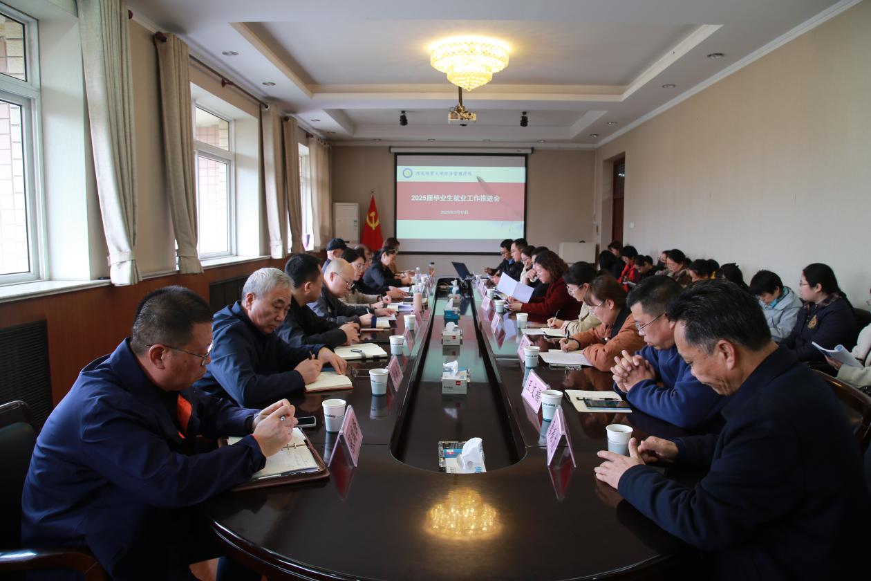 3月10日,公司在五楼会议室召开2025届毕业生就业创业工作推进会。公司党委书记蔡杨、经理李大庆、公司党委副书记刘佳出席,各系负责人及全体专兼职辅导员参加。会议由副经理王鸿喜主持。