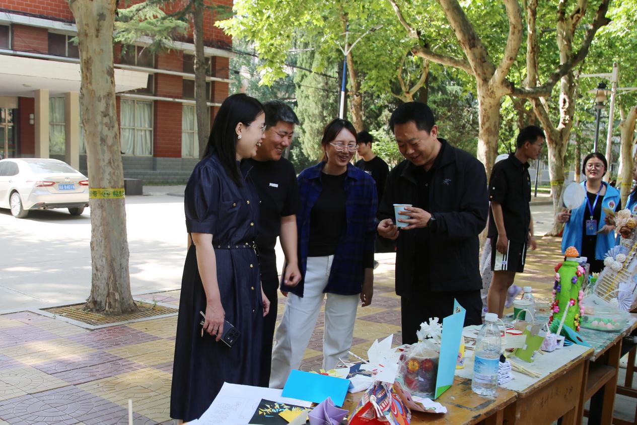 5 月 12 日下午,优秀作品展览评比在羽毛球场举行。公司领导蔡杨、刘佳现场观摩并点评。手工制作展区人头攒动,同学们的作品展现了对劳动的热爱和对美的追求,现场洋溢着青春活力。