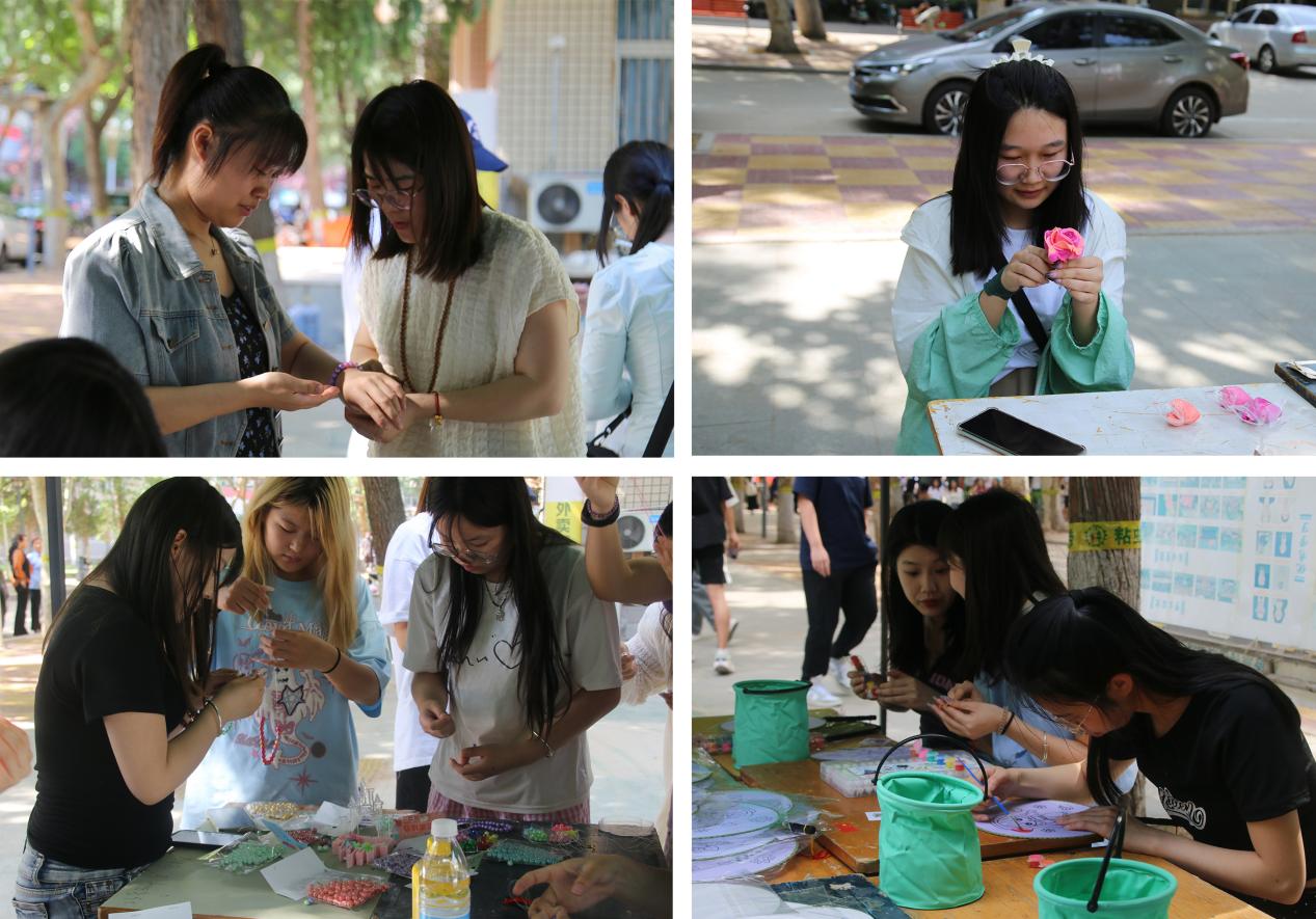 活动分为评选类和参与类两大板块。评选类包括“收纳能手展示”“手工制作展示”“劳动节画报设计展示”;参与类涵盖“手绘漆扇”“手工粘土制作”“手串制作”“花束制作”。同学们在活动中体验劳动乐趣,展现创造才华。